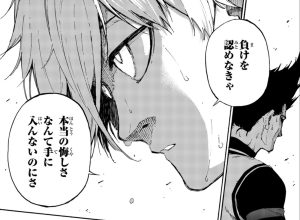 敗北を経験してサッカーの面白さを知った凪 誠士郎が、チーム戦でワンマンプレーに走る馬狼 照英に対してつぶやいたセリフです。ルーズでマイペースな印象が強かった凪の成長を感じられ、敗北感が人の成長につながることを感じられるれセリフでした。